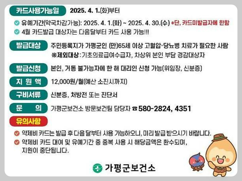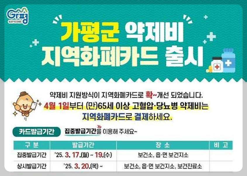 4์๋ถํฐ ๊ฐํ๊ตฐ์ ์ด๋ฅด์ ์ฝ์ ๋น ์ง์ ๋ฐฉ์์ด ๋ฌ๋ผ์ง๋๋ค! ๊ธฐ์กด์๋ ์ฝ๊ตญ์์ ์ฒ๋ฐฉ์ ์ ์ ์ถํ๋ฉด ์๋์ผ๋ก ์ฝ์ ๋น๊ฐ ์ฐจ๊ฐ๋์์ง๋ง, ์ด์ ๋ ๋ฐ๋์ '๊ฐํ๊ตฐ ์ฝ์ ๋น ์ง์ญํํ์นด๋'๋ฅผ ๋ฐ๊ธ๋ฐ์์ผ ํฉ๋๋ค. ๋งค๋ฌ 1๋ง 2์ฒ ์์ ์ฝ์ ๋น ์ง์ ํํ์ ๋ฐ์ ์ ์์ผ๋, 3์ 17์ผ๋ถํฐ ์์๋๋ ์นด๋ ๋ฐ๊ธ์ ๊ผญ ์ฑ๊ธฐ์ธ์!
