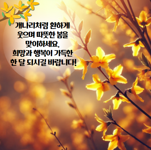 "κΈΈμ—ˆλ˜ 겨울이 μ§€λ‚˜κ³  봄이 μ™”μŠ΅λ‹ˆλ‹€. λ”°λœ»ν•œ κ³„μ ˆλ§ŒνΌμ΄λ‚˜ 즐거운 일듀이 κ°€λ“ν•œ ν•œ 달이 되길 λ°”λžλ‹ˆλ‹€. 올 ν•œ 해도 ν•¨κ»˜ νž˜λ‚΄μš”!"