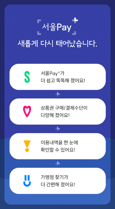 기쑴에 ‘μ„œμšΈνŽ˜μ΄ ν”ŒλŸ¬μŠ€’ 앱을 μ‚¬μš©ν•˜κ³  μžˆμ—ˆλ‹€λ©΄, μ—…λ°μ΄νŠΈλœ μƒˆλ‘œμš΄ 앱을 μ„€μΉ˜ν•΄μ•Ό ν•©λ‹ˆλ‹€.