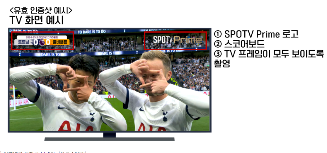 1) ์ํฅ๋ฏผ ๊ฒฝ๊ธฐ ์์ค๊ณ๋ฅผ ์์ฒญํ๋ฉฐ SPOTV Prime ๋ก๊ณ , ์ค์ฝ์ด๋ณด๋, TV ํ๋ ์์ด ๋ชจ๋ ๋ณด์ด๋๋ก ์ธ์ฆ์ท ์ดฌ์