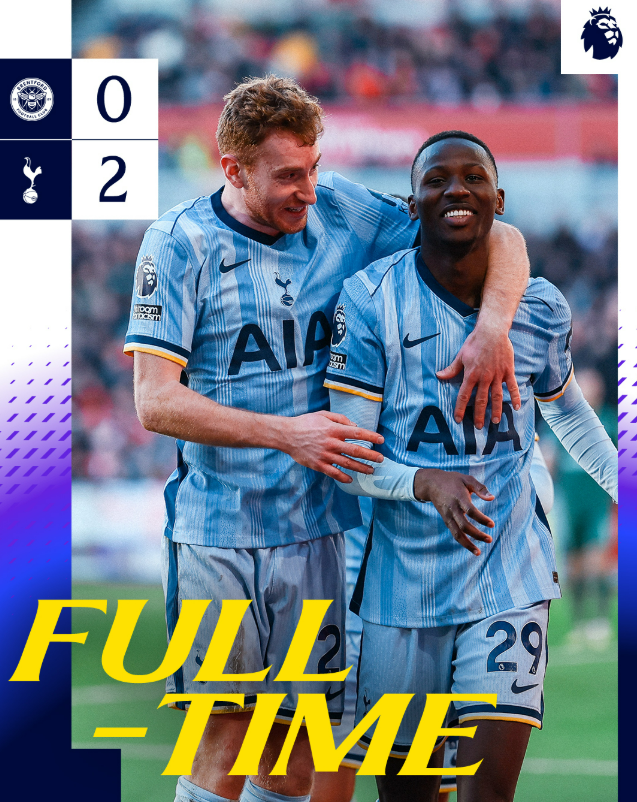 2024-2025 ํ”„๋ฆฌ๋ฏธ์–ด๋ฆฌ๊ทธ(PL) 24๋ผ์šด๋“œ ๋ธŒ๋ ŒํŠธํฌ๋“œ ์›์ • ๊ฒฝ๊ธฐ์—์„œ ์†ํฅ๋ฏผ์˜ ๋งนํ™œ์•ฝ ๋•๋ถ„์— 2-0 ์™„์Šน์„ ๊ฑฐ๋‘๋ฉฐ 7๊ฒฝ๊ธฐ ๋ฌด์Šน์˜ ๋Šช์—์„œ ๋ฒ—์–ด๋‚ฌ์Šต๋‹ˆ๋‹ค.