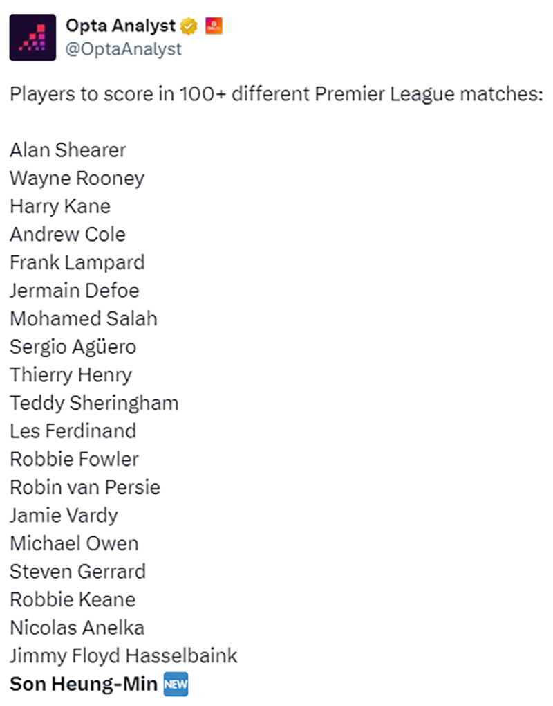 ๋ํ, ์ํฅ๋ฏผ์ EPL ํต์ฐ 125ํธ๊ณจ์ ๊ธฐ๋กํ๋ฉฐ ์ญ๋ ๋์ ๊ณต๋ 18์์ ์ด๋ฆ์ ์ฌ๋ ธ์ต๋๋ค. ๋์ ๊ธฐ๋ก์์๋ ํต์ฐ 68๊ฐ๋ก ํ ํธ๋ ๊ตฌ๋จ ์ญ์ฌ์ EPL ์ต๋ค ๋์์ ๊ธฐ๋กํ๋ฉฐ ๋ ํ๋์ ์ ์ค์ ์จ๋ด๋ ค๊ฐ๊ณ ์์ต๋๋ค.