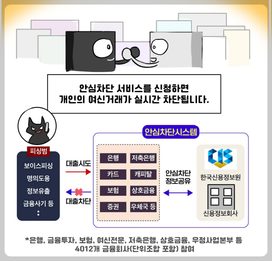 ์ต๊ทผ ๊ฐ์ธ์ ๋ณด ์ ์ถ ์ฌ๊ณ ์ ํจ๊ป ๋ณด์ด์คํผ์ฑ, ๋ช ์๋์ฉ ํผํด๊ฐ ๋น ๋ฅด๊ฒ ๋๊ณ ์์ต๋๋ค. ํนํ SK ํดํน ์ฌ๊ฑด ์ดํ๋ก, ๋ณธ์ธ๋ ๋ชจ๋ฅด๊ฒ ๋์ถ์ด ์คํ๋๊ฑฐ๋ ์นด๋๊ฐ ๋ฐ๊ธ๋๋ ์ฌ๋ก๊ฐ ์๋ฐ๋ฅด๊ณ ์์ฃ . ์ด๋ฐ ํผํด๋ฅผ ๋ง๊ธฐ ์ํ ๊ฐ์ฅ ํจ๊ณผ์ ์ธ ๋ฐฉ๋ฒ์ ๋ฐ๋ก "์ฌ์ ๊ฑฐ๋ ์์ฌ์ฐจ๋จ ์๋น์ค"์ ๋๋ค.