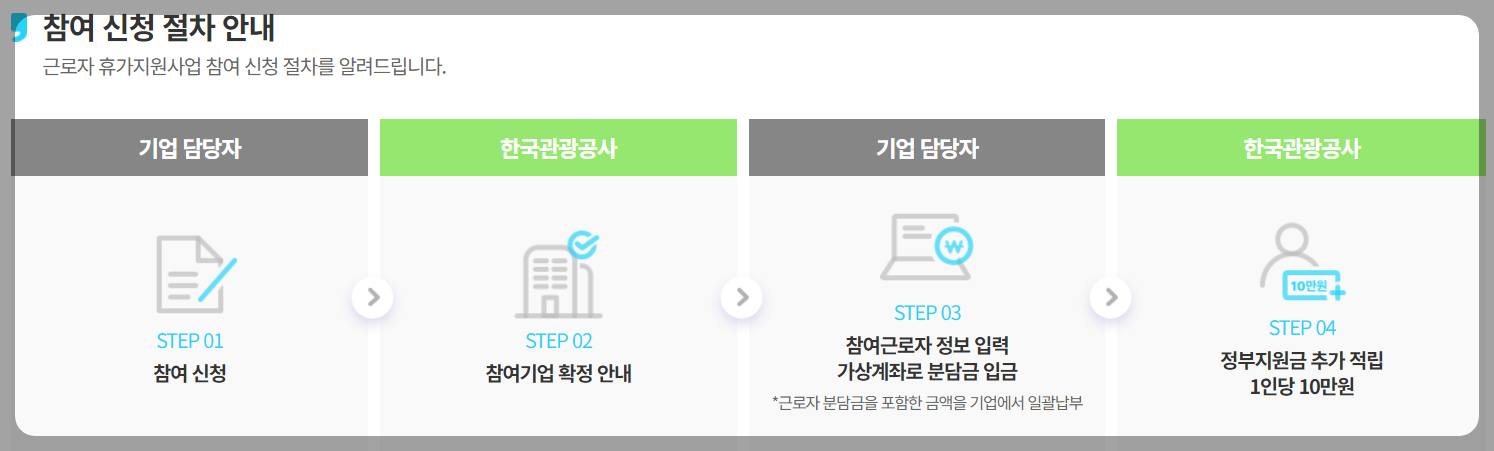 μ λΆμ κΈ°μ μ΄ ν¨κ» κ·Όλ‘μλ€μ μ¬ν λΉμ©μ μ§μν΄μ£Όλ μ¬μ μ λλ€. κ·Όλ‘μκ° 20λ§ μμ λΆλ΄νλ©΄, μ λΆμ κΈ°μ μ΄ κ°κ° 10λ§ μμ© μΆκ°ν΄ μ΄ 40λ§ μμ μ 립κΈμ΄ μκΉλλ€! μ΄ κΈμ‘μΌλ‘ μλ°, κ΅ν΅, κ΄κ΄μ§ μ μ₯κΆ λ±μ ꡬ맀ν μ μμ΅λλ€.