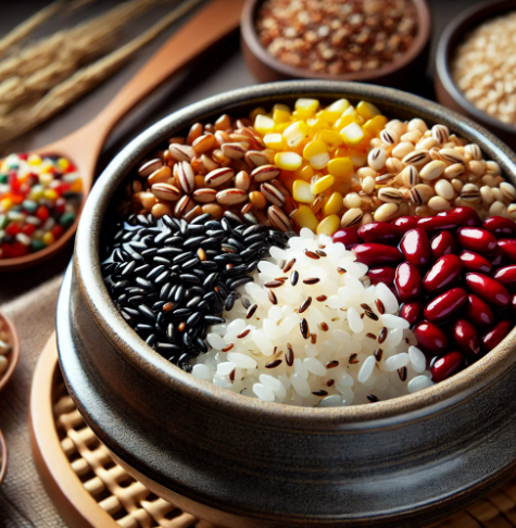 μ, ν₯, μμ, μ‘°, 콩μ μμ΄ λ§λ μ€κ³‘λ°₯μ νμμ 건κ°μ κΈ°μνλ μλ―Έλ₯Ό λ΄κ³ μμ΅λλ€.