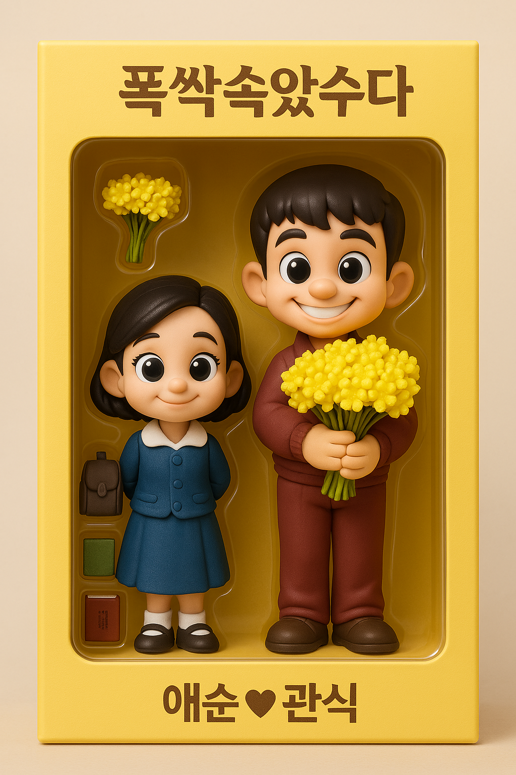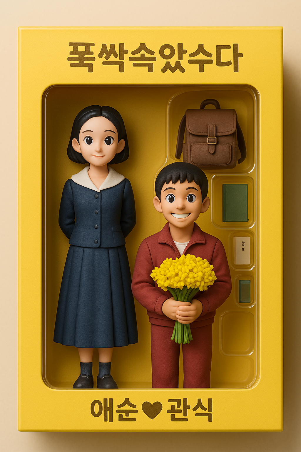 ํ๋กฌํํธ์ "๊ท์ฌ์ด ์คํ์ผ", "์ง๋ธ๋ฆฌ ๋๋", "๋ฐ์ค ์ธํธ ๊ตฌ์ฑ", "์๋ ์ผ๊ตด" ๋ฑ ๋ํ