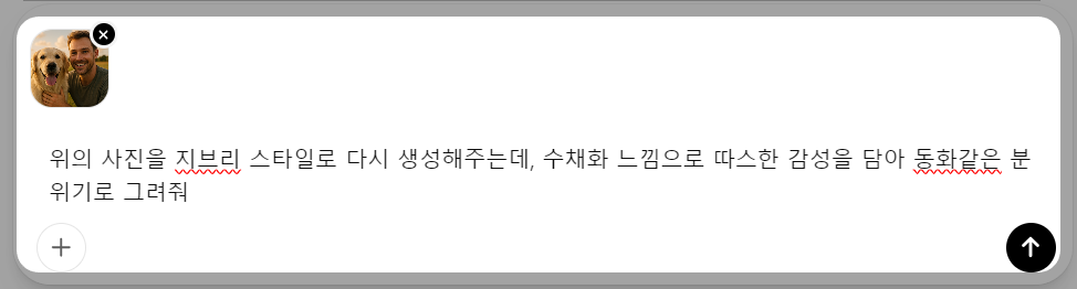 โœ… ํŒ: ํ”„๋กฌํ”„ํŠธ์— “์ง€๋ธŒ๋ฆฌ ์Šคํƒ€์ผ”, “์ˆ˜์ฑ„ํ™” ๋А๋‚Œ”, “๊ฐ์„ฑ์ ์œผ๋กœ”, “๋™ํ™” ๊ฐ™์€” ๊ฐ™์€ ํ‚ค์›Œ๋“œ๋ฅผ ๋„ฃ์œผ๋ฉด ํ€„๋ฆฌํ‹ฐ๊ฐ€ ํ›จ์”ฌ ๋†’์•„์ ธ์š”!