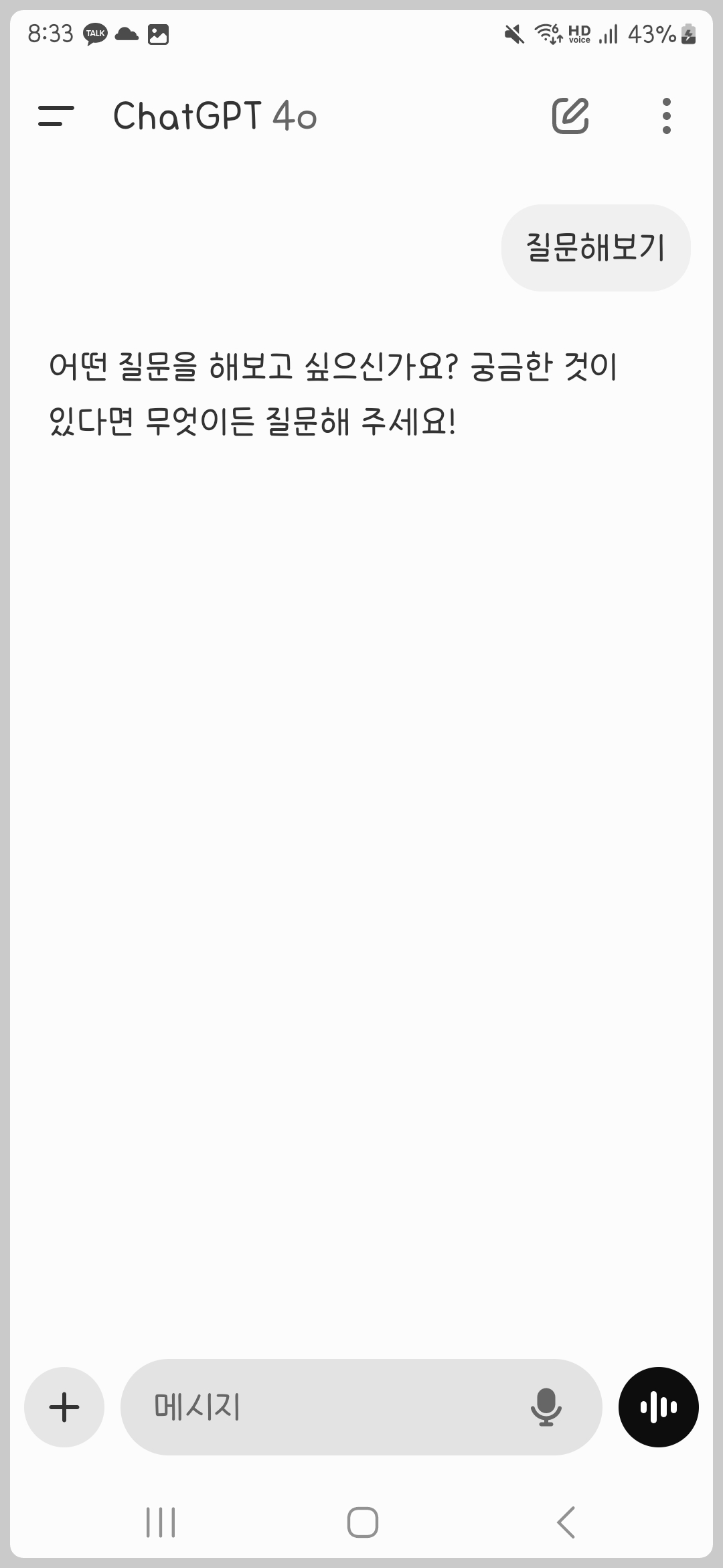 - ์ฑํ ์ฐฝ์ ์ง๋ฌธ์ ์ ๋ ฅํ๋ฉด ์ฑGPT๊ฐ ๋ต๋ณ์ ์ ๊ณตํฉ๋๋ค.