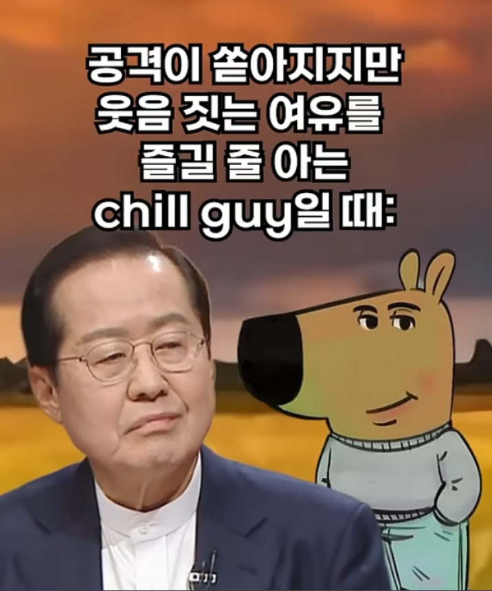 "κ³΅κ²©μ΄ μμμ§μ§λ§ μμ μ§λ μ¬μ λ₯Ό μ¦κΈΈ μ€ μλ chill guyμΌ λ"λΌλ μ μΉ κ΄λ ¨ μ½ν μΈ