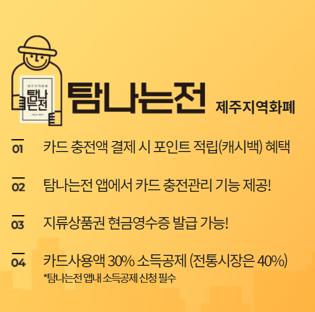 ํ๋๋์ ์ ์ ์ฃผ๋์์ ์ฌ์ฉํ ์ ์๋ ์ง์ญํํ์์. ์นด๋ํ์ผ๋ก ์ ๊ณต๋๋ฉฐ, ์ฑ์ ํตํด ์ถฉ์ ํ๊ณ ์ฌ์ฉํ๋ฉด ๋ค์ํ ํํ์ ๋ฐ์ ์ ์์ด์. ์ ์ฃผ๋ ๋ด ์ ํต์์ฅ, ๋๋ค ์ํผ, ์นดํ, ์์์ , ๋ณ์ ๋ฑ์์ ์ฌ์ฉํ ์ ์๊ณ , ์ฌ์ฉ ์ ํฌ์ธํธ ์ ๋ฆฝ(์บ์๋ฐฑ)๊น์ง ๋๋ต๋๋ค! ๐ฐ