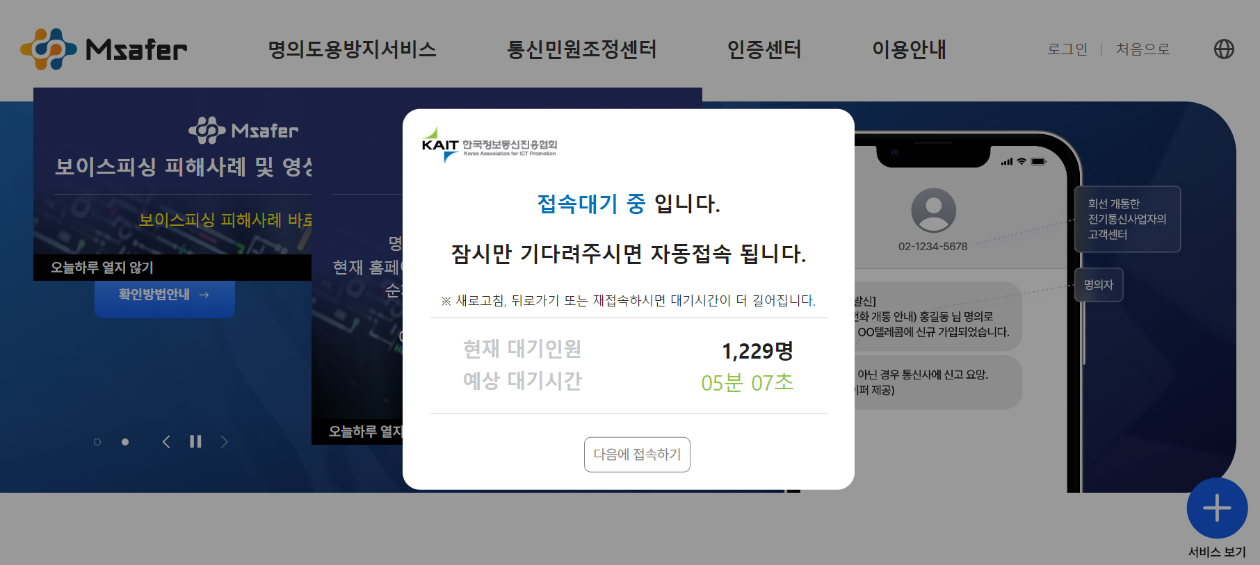 μ΅κ·Ό SKν λ μ½€ μλ² ν΄νΉμΌλ‘ μΈν΄ μ μ¬(USIM) μ λ³΄κ° μΌλΆ μ μΆλμλ€λ μμ, λ€μΌμ ¨λμ? "νΉμ λλ λͺ¨λ₯΄κ² λ΄ λͺ μλ‘ ν΄λν°μ΄ κ°ν΅λ 건 μλκΉ?" κ±±μ νλ λΆλ€μ΄ κΈμ¦νλ©΄μ, κ°μ μ¬μ€νν©μ‘°ν μλΉμ€ μ΄μ©μκ° νλ°μ μΌλ‘ λμ΄λκ³ μμ΅λλ€. (μ€μ λ‘ μ λ μ§μ λ€μ΄κ°λ μμ²λͺ μ΄ λκΈ°λ₯Ό νκ³ μμ΄μ μ μμμ²΄κ° λΆκ°λ₯νμ΅λλ€.)